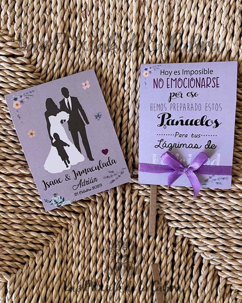 Las lágrimas de Felicidad son un estuche que contiene un pañuelo de papel para los que se emocionan en las bodas. Es un bonito detalle para vuestros invitados, porque las bodas son muy emocionantes, siempre se escapa alguna lagrimita y qué mejor que estar preparados para ello.